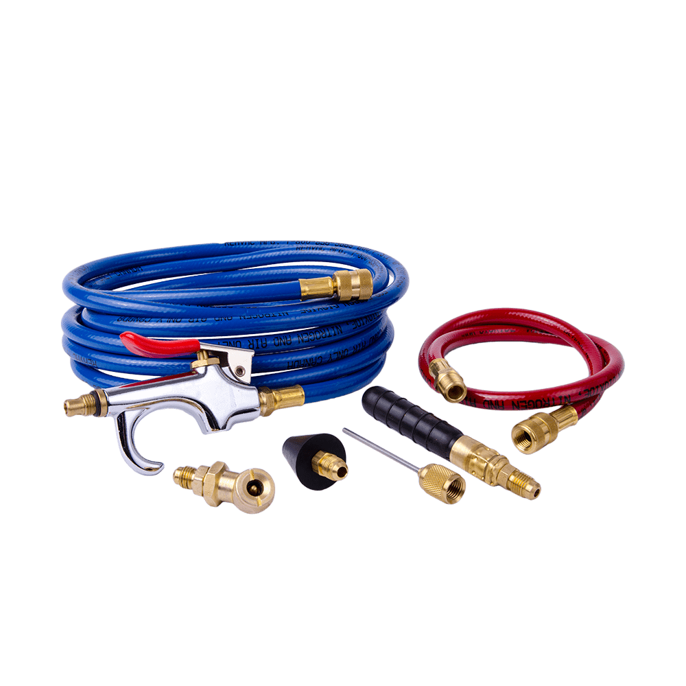 At our HVAC supply store, we deliver the best prices and lightning-fast shipping on our extensive product range. Trust us for all your industrial and maintenance supplies, and keep your systems running smoothly. Shop now! The DiversiTech® HK-12 Drain Cleaning Accessory Kit. The HK-12 deluxe drain cleaning kit features connection hoses and a variety of nozzle end attachments: DF-75 drain dawg blowout adapter, CK-141 universal drain cone, TC-25 tire chuck, QN-63 needle tip and CW-15 15 Inch whip hose with a trigger gun. Made in the USA.