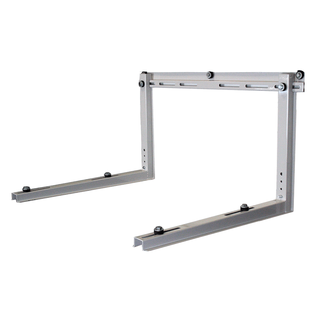 Our HVAC supply store is your trusted source for high-quality industrial supplies. We are committed to providing the best prices, fast shipping, and exceptional customer service. The Quick-Sling® QSWB4000 is a hurricane rated flat wall or siding mounted bracket. The QSWB4000 includes a slider track which allows the shelf/arms to adjust from 6 - 34 in. widths. The Quick Sling line of wall brackets provide a quick, safe, and stable way to mount an outdoor mini-split unit to multiple types of wall structures. The longer shelf depth allows for the manufacturer's recommended clearance for proper airflow. 500 lbs. rated capacity.