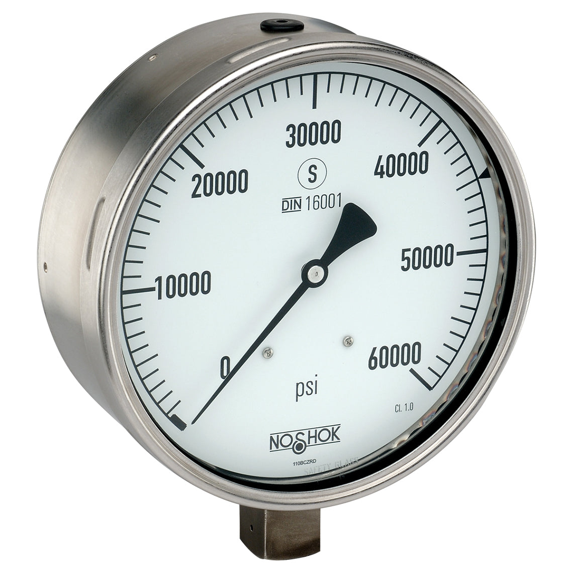 - Vacuum and compound ranges through 0 psi to 20,000 psi