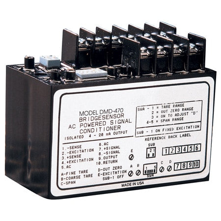 Isolated Signal Conditioner with Transducer Power up to 120 mA for Strain Gages, Load Cells & Transducers, 5 mV to 50 mV I/P, 5 mA O/P, FGPR, for Bridge-type Inputs, DMD-470 Series, Each