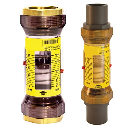 Easy-View Flow Meter, Water, 7 GPM to 75 GPM, 325 psi, 2 " NPT Female, 121 °C (250 °F), ± 5 %, Direct Read, Polysulfone, T300 SS, Buna, Brass, FL-9800 Series, Each