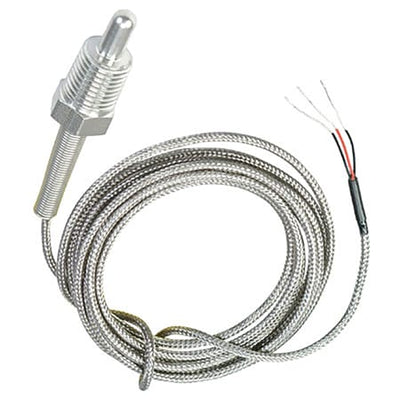 Pipe Plug Thermistor Probe, Stripped Leads, -80 °C to 100 °C, ± 0.2 °C, 0.25 " x 0.5 " Probe, 18 " Cable, 2 Wires, 304 SS, Immersion, 1/4 " NPT, 2252 Ω @ 25 °C, TH-44004, Each