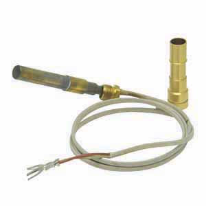 Robertshaw® thermopiles are the industry leader for gas appliance applications. Their primary function is to ensure a standing pilot light is operative so that on a call for heat, the main burner gas will be properly ignited. Thermopiles are placed in gas applications to detect the existence of a flame for safety purposes by shutting off the potential gas flow to a burner. A thermopile is the assembly of many thermocouples to increase the millivolt output. Robertshaw thermopiles have two types of connections: coaxial and two-wire spade connectors.The 1950 thermopiles, also known as TP-75, are two-wire spade connectors. The 1951 thermopiles, also known as CP-2 (500-600 millivolts) are coaxial connectors.The 1950 and 1951 Series Thermopiles (pilot generators) are designed for use on self-powered gas control systems. They can be used to replace similar competitive devices.Features and Benefits- Easy burner installation with attached threaded nut