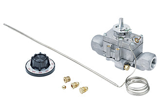 The Robertshaw® 4200 Series Gas Thermostat is a heavy-duty, high capacity gas thermostat. These units are available with modulating only or with modulating snap-acting bypass. Both pilot and bypass adjustments are provided. Pilot outlets and customized settings are optional. They are available for a wide variety of applications such as deck ovens, convection ovens, baking ovens, and ranges.