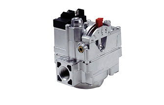 The Robertshaw® 720 Series 24 Volt Dual Gas Valve is a six-function gas valve incorporating a manual valve, safety shut-off magnet, dual automatic valves, main gas regulator, and pilot adjustment. Models are available with and without a pressure regulator. Uni-Kit® models are factory set at 3.5” WC for natural gas, but can be converted to LP by installing the regulator conversion kit included. The wiring connections, manual selector and adjustments are easily accessible on top of the valve. With a 3-9/16” swing radius, the 720 Series lends itself well to replacing many OEM valves. Valve can be mounted in any position except upside down.