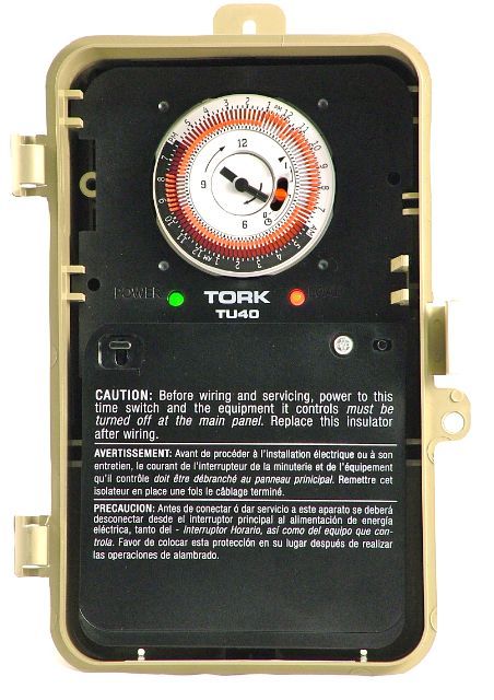 The Tork® TU40 Series - Universal 24 hour time switches with multi-voltage options offer automatic On-Off control when operation is required at the same time every day, seven days a week. Applications include On-Off control of heating, air conditioning, display lighting, ventilating, pumps, fans and security systems. Tork Electric Timers are sold exclusively through Robertshaw® to HVACR wholesalers.Features and Benefits- Automatic input voltage detection without DIP switches