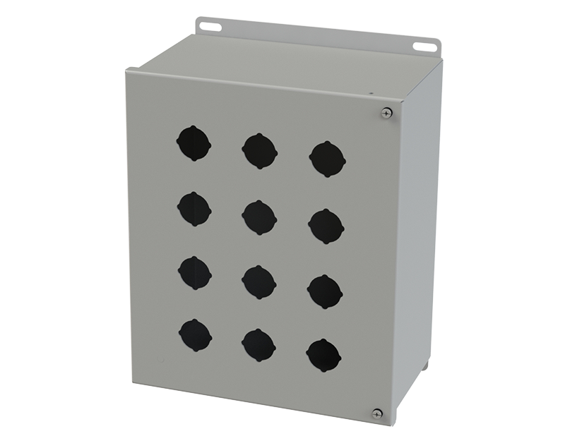 - 4-way standard pushbutton holes accept all brands of oil-tight pushbuttons, switches, and pilot lights. Hole diameter is 1.20 In. (30.5 mm)
