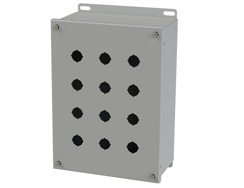 - 4-way standard pushbutton holes accept all brands of oil-tight pushbuttons, switches, and pilot lights. Hole diameter is 0.87 In. (22.5mm).