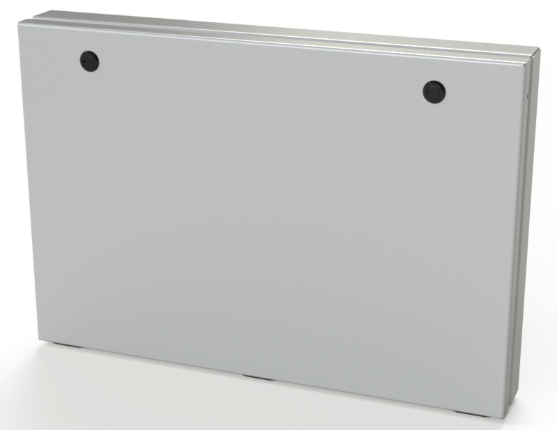 Designed for use on the exterior of an enclosure or door to keep prints clean and easy to access. Exterior print pockets have a hinged cover with cable stops to hold the door at 90 degrees open position and black quarter turn latches. Made of steel and finished with RAL 7035 gray powder coating.