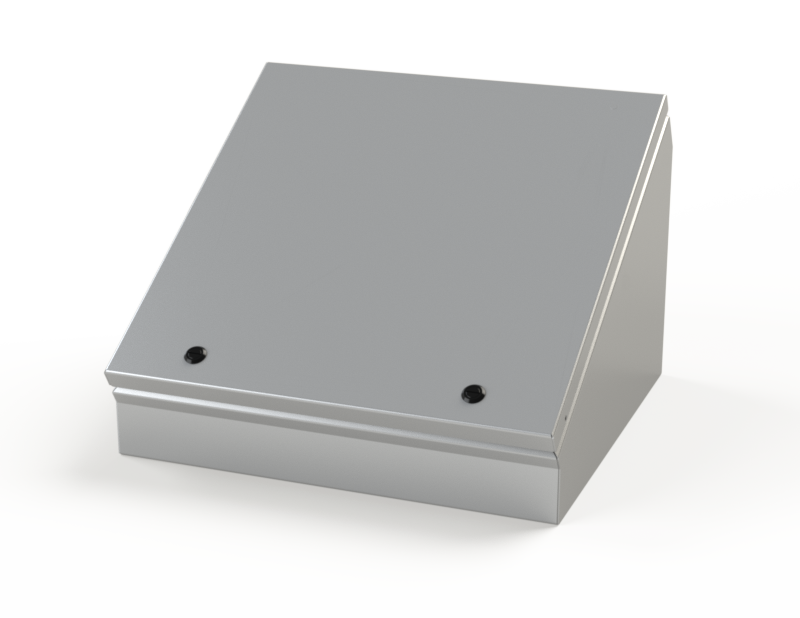 Designed to house electrical and electronic controls, instruments, and components. Provides protection from dust, dirt, oil and water. Consolets can be mounted on either of two sides to give a control surface inclined 30 degrees or 60 degrees. Can be mounted on desks, machines, or pedestals (not included).