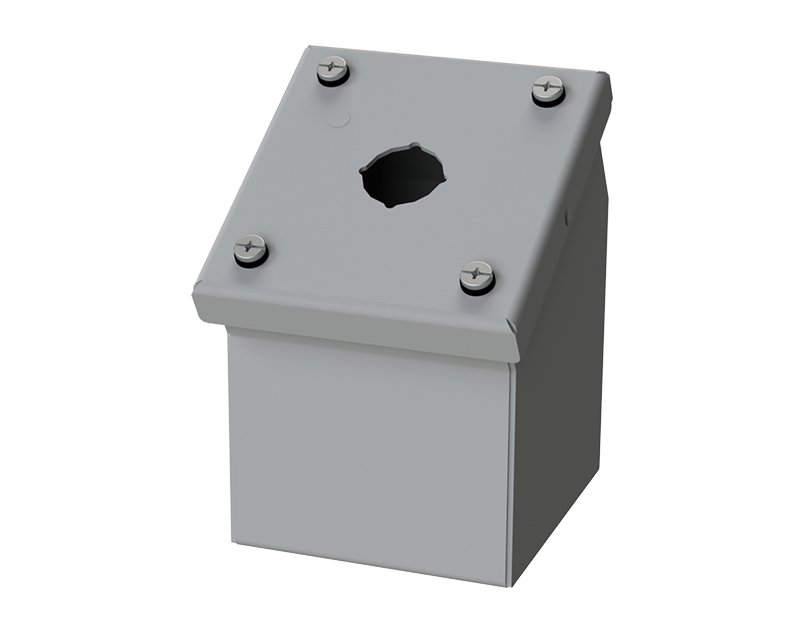 Designed to offer protection for all standard brands of oil-tight pushbuttons, switches, and pilot lights where slanted surfaces are desired. It offers protection from dust, dirt, oil and water.
