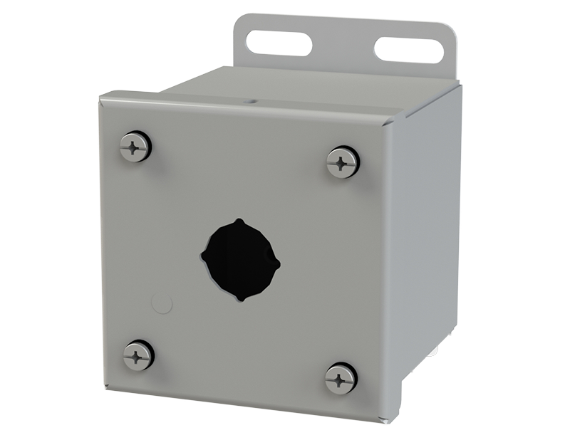 - 4-way miniature pushbutton holes accept all brands of oil-tight pushbuttons, switches and pilot lights. Hole diameter is 0.87 in.