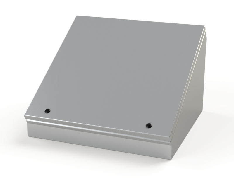 Designed to house electrical and electronic controls, instruments, and components. Provides protection from dust, dirt, oil and water. Consolets can be mounted on either of two sides to give a control surface inclined 30 degrees or 60 degrees. Can be mounted on desks, machines, or pedestals (not included).