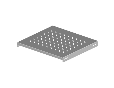 Designed to support monitors, PC's, printers or any other equipment while allowing air circulation inside the work station. Mounts between the mounting channels provided inside the work station. Made of heavy gauge steel. Mounting hardware is included.