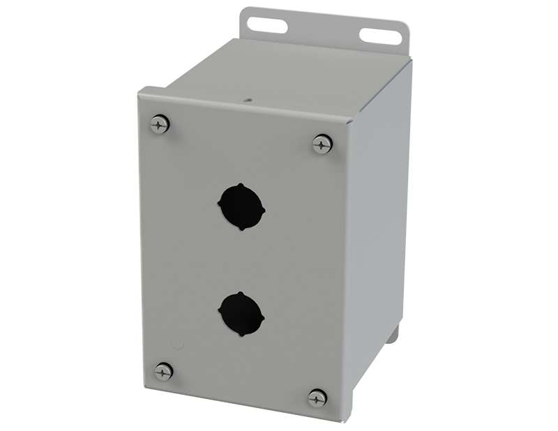 - 4-way standard pushbutton holes accept all brands of oil-tight pushbuttons, switches, and pilot lights. Hole diameter is 0.87 In. (22.5mm).