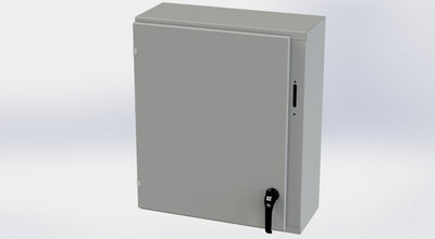 Provision for Lifting Lugs included on enclosures with Height 48" and with Depth 16". The Lifting Lug assembly will be included with the enclosure bolt pack and hole plugs provided to seal holes in bottom of enclosure.