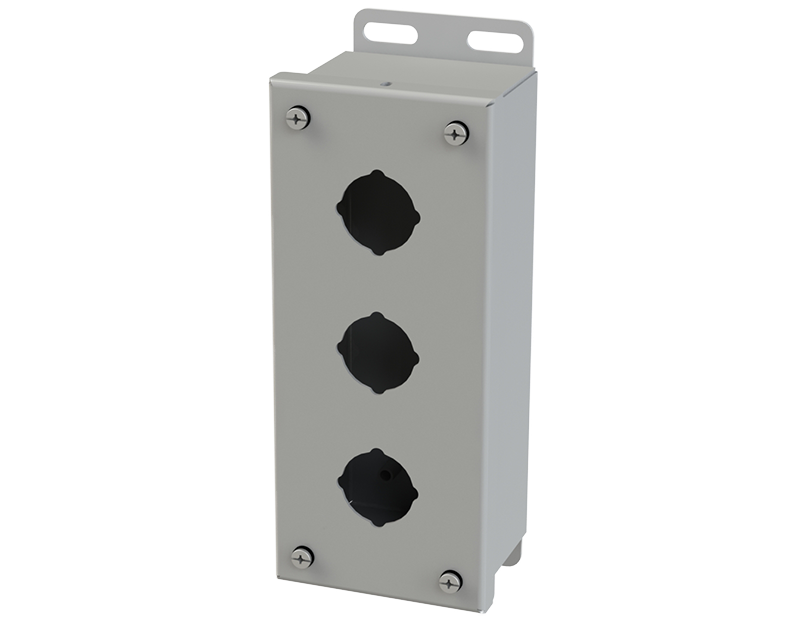 - 4-way standard pushbutton holes accept all brands of oil-tight pushbuttons, switches, and pilot lights. Hole diameter is 1.20 In. (30.5 mm)