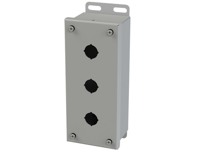 - 4-way standard pushbutton holes accept all brands of oil-tight pushbuttons, switches, and pilot lights. Hole diameter is 0.87 In. (22.5mm).
