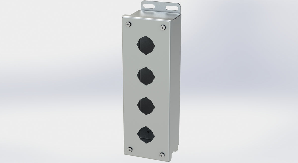 - 4-way standard pushbutton holes accept all brands of oil-tight pushbuttons, switches and pilot lights. Hole diameter is 1.20 In. (30.5mm).