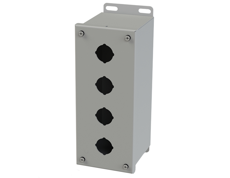 - 4-way standard pushbutton holes accept all brands of oil-tight pushbuttons, switches, and pilot lights. Hole diameter is 1.20 In. (30.5 mm)