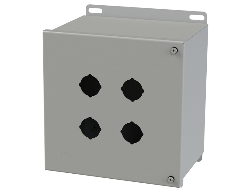 - 4-way standard pushbutton holes accept all brands of oil-tight pushbuttons, switches, and pilot lights. Hole diameter is 1.20 In. (30.5 mm)