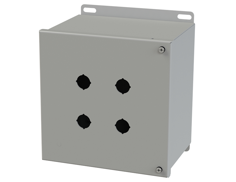 - 4-way standard pushbutton holes accept all brands of oil-tight pushbuttons, switches, and pilot lights. Hole diameter is 0.886 In. (22.5 mm)