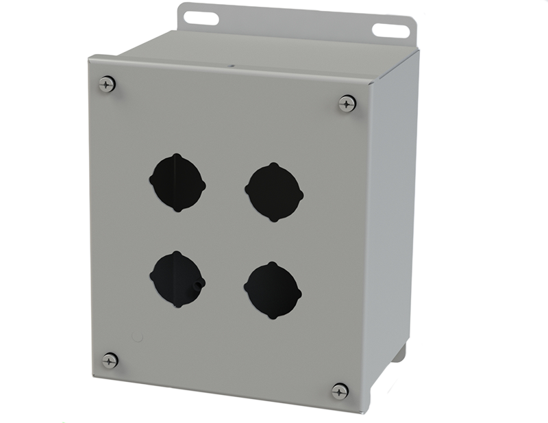 - 4-way standard pushbutton holes accept all brands of oil-tight pushbuttons, switches, and pilot lights. Hole diameter is 1.20 In. (30.5 mm)