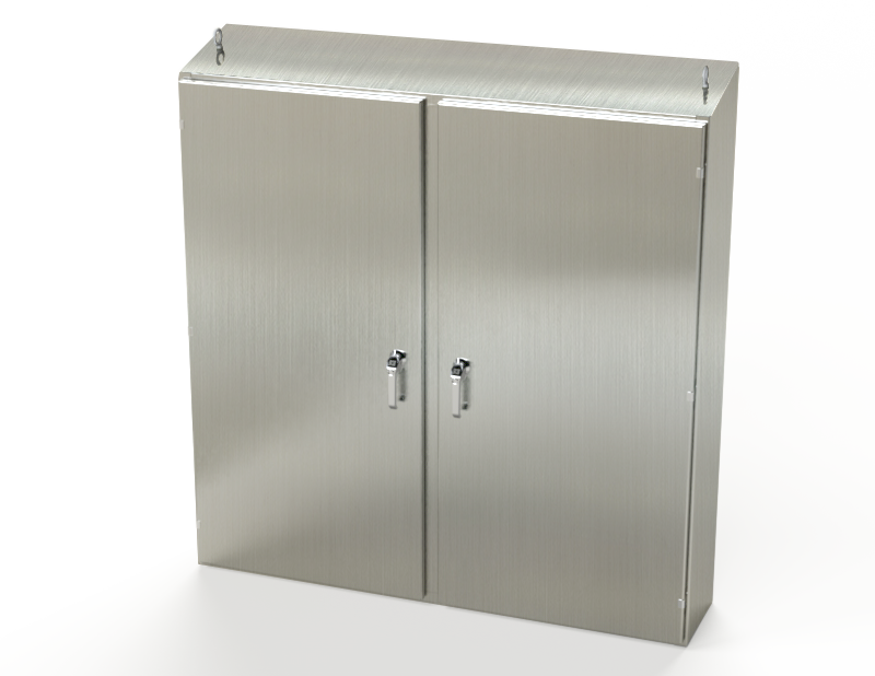SCE-60EL6012SSST | NEMA 3R, 12, 4, 4X | S.S. 2DR EL Sloping Top Enclosure, 60H x 60W x 12D | Saginaw