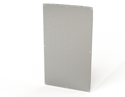 Designed to mount in the back of an enclosure. Size determines steel thickness.