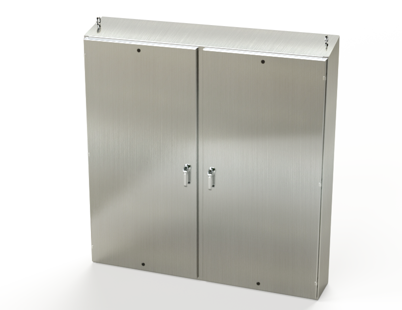 SCE-72EL7212SSST | NEMA 3R, 12, 4, 4X | S.S. 2DR EL Sloping Top Enclosure, 72H x 72W x 12D | Saginaw
