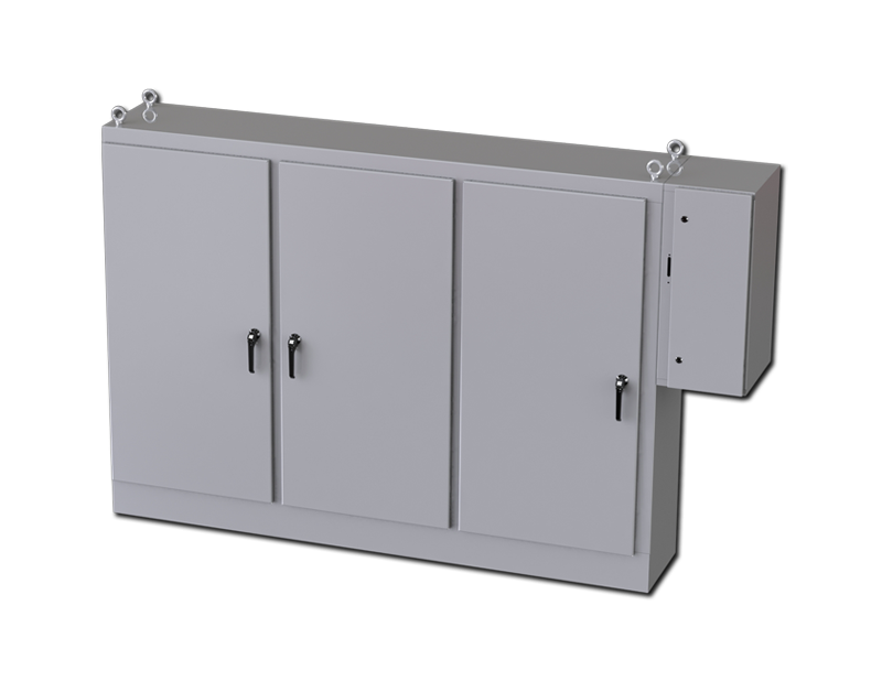 Designed to house the main power supply in external enclosure on the right side of main enclosure, keeping the live side of the power supply separate from the primary electrical equipment. Provides protection from dirt, dust, oil and water and can house most standard type disconnects. For outdoor application a drip shield and drain vent is recommended.