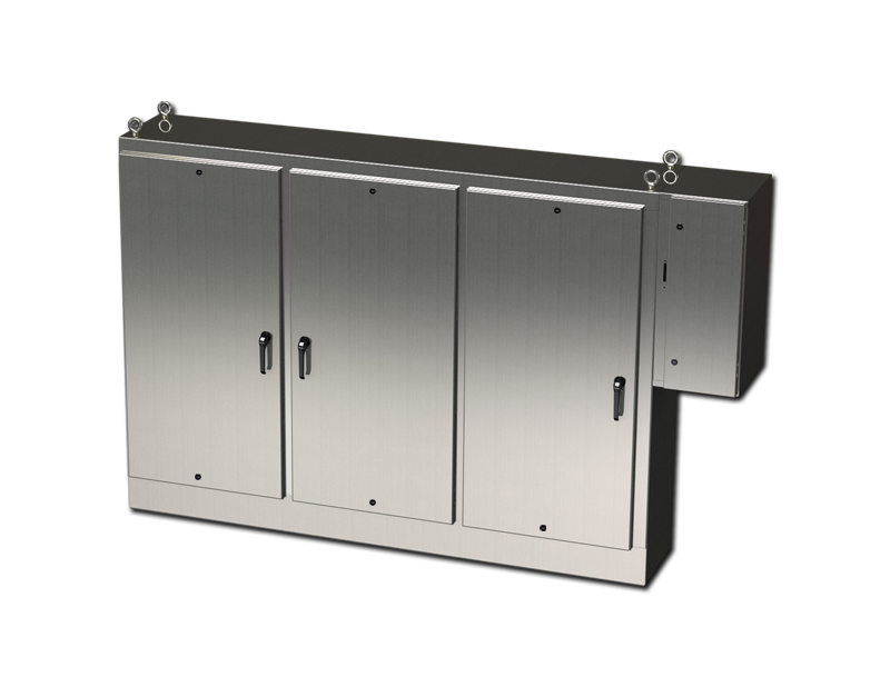 Designed to house the main power supply in external enclosure on the right side of main enclosure, keeping the live side of the power supply separate from the primary electrical equipment. Provides protection from dirt, dust, oil and water and can house most standard type disconnects. For outdoor application a drip shield and drain vent is recommended.