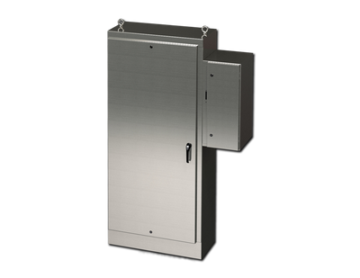 Designed to house the main power supply in external enclosure on the right side of main enclosure, keeping the live side of the power supply separate from the primary electrical equipment. Provides protection from dirt, dust, oil and water and can house most standard type disconnects. For outdoor application a drip shield and drain vent is recommended.