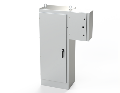 Designed to house the main power supply in external enclosure on the right side of main enclosure, keeping the live side of the power supply separate from the primary electrical equipment. Provision for Compact Fusible Disconnect with Rotary handle Disconnect 30 to 200 amp Allen-Bradley 194R, Square D GS2, Eaton/Bussmann R9, Siemens CFS models and Socomec Fuserbloc models. Provides protection from dirt, dust, oil and water. For outdoor application a drip shield and drain vent is recommended.