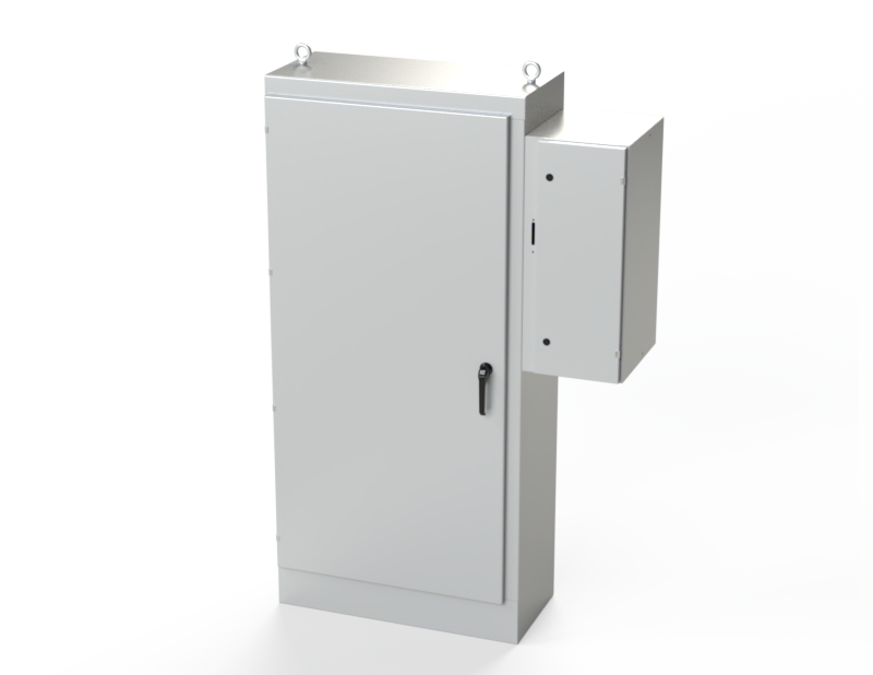 Designed to house the main power supply in external enclosure on the right side of main enclosure, keeping the live side of the power supply separate from the primary electrical equipment. Provides protection from dirt, dust, oil and water and can house most standard type disconnects. For outdoor application a drip shield and drain vent is recommended.