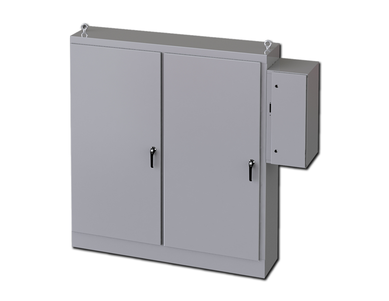 Designed to house the main power supply in external enclosure on the right side of main enclosure, keeping the live side of the power supply separate from the primary electrical equipment. Provides protection from dirt, dust, oil and water and can house most standard type disconnects. For outdoor application a drip shield and drain vent is recommended.