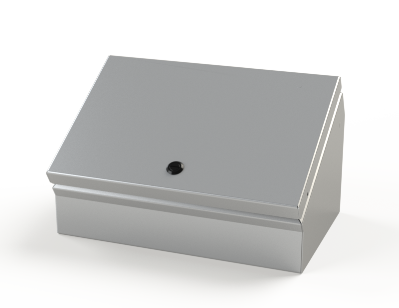Designed to house electrical and electronic controls, instruments, and components. Provides protection from dust, dirt, oil and water. Consolets can be mounted on either of two sides to give a control surface inclined 30 degrees or 60 degrees. Can be mounted on desks, machines, or pedestals (not included).