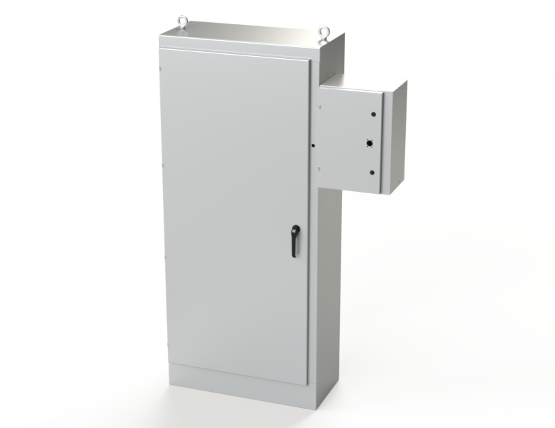 Designed to house the main power supply in external enclosure on the right side of main enclosure, keeping the live side of the power supply separate from the primary electrical equipment. Provision for Compact Fusible Disconnect with Rotary handle Disconnect 30 to 200 amp Allen-Bradley 194R, Square D GS2, Eaton/Bussmann R9, Siemens CFS models and Socomec Fuserbloc models. Provides protection from dirt, dust, oil and water. For outdoor application a drip shield and drain vent is recommended.