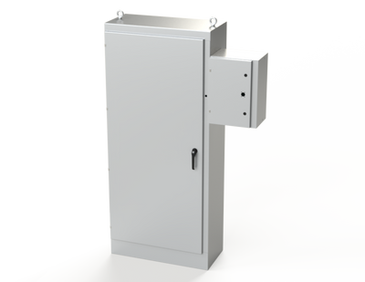 Designed to house the main power supply in external enclosure on the right side of main enclosure, keeping the live side of the power supply separate from the primary electrical equipment. Provision for Compact Fusible Disconnect with Rotary handle Disconnect 30 to 200 amp Allen-Bradley 194R, Square D GS2, Eaton/Bussmann R9, Siemens CFS models and Socomec Fuserbloc models. Provides protection from dirt, dust, oil and water. For outdoor application a drip shield and drain vent is recommended.