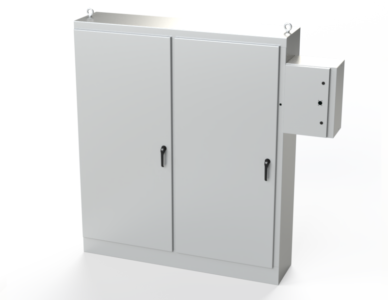 Designed to house the main power supply in external enclosure on the right side of main enclosure, keeping the live side of the power supply separate from the primary electrical equipment. Provision for Compact Fusible Disconnect with Rotary handle Disconnect 30 to 200 amp Allen-Bradley 194R, Square D GS2, Eaton/Bussmann R9, Siemens CFS models and Socomec Fuserbloc models. Provides protection from dirt, dust, oil and water. For outdoor application a drip shield and drain vent is recommended.