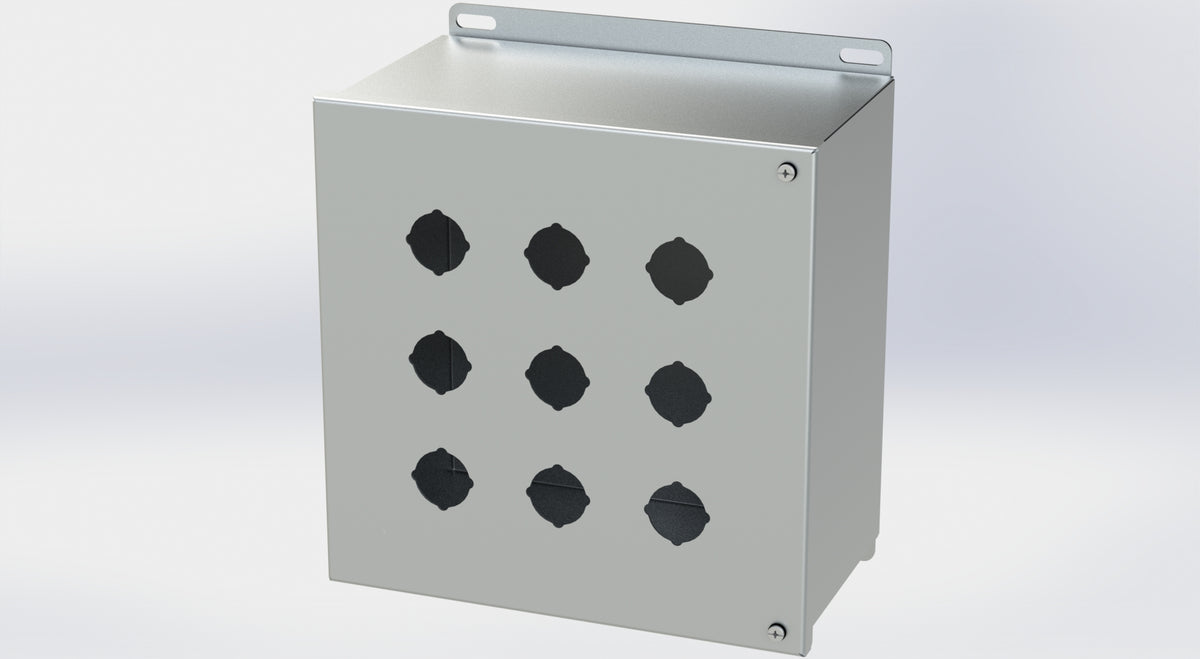 - 4-way standard pushbutton holes accept all brands of oil-tight pushbuttons, switches and pilot lights. Hole diameter is 1.20 In. (30.5 mm).