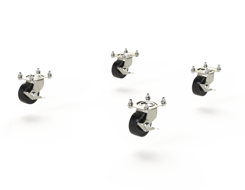 Set of 4 casters. Casters have ball bearing pivots and brakes. Load rating 250 lbs for each caster. Mounting hardware is included.