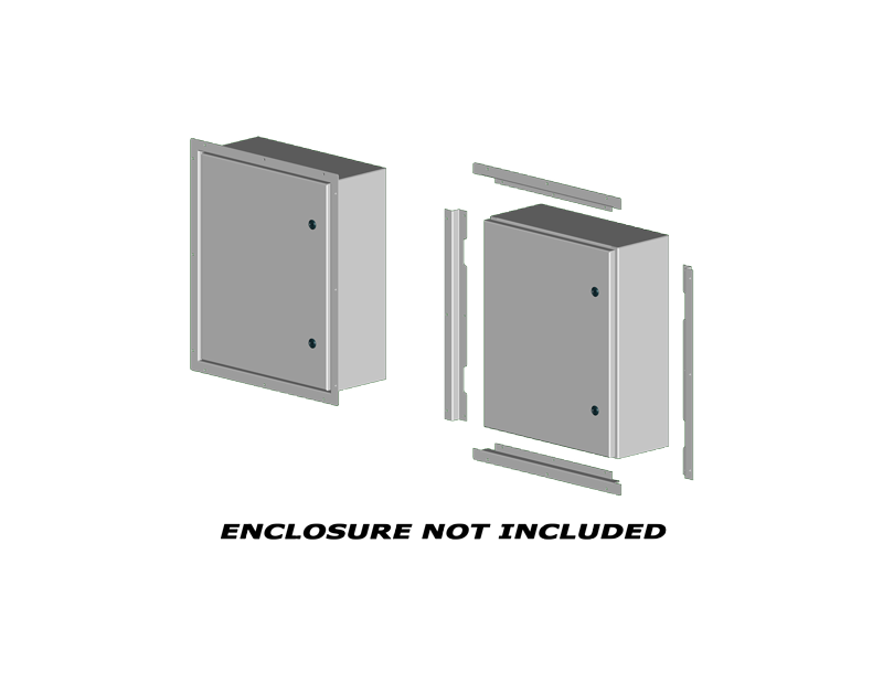 Flush Mount Frames are designed for use with the Enviroline Wall-Mount Enclosures, quickly converting the wall mount enclosure to a flush mount enclosure. Two part numbers are required to complete the assembly, one part number for the height of the enclosure and one part number for the width of the enclosure. All kits are provided with hardware to assemble the frame to the enclosure and maintain the environmental rating of the enclosure. Frame is made of heavy gage steel.