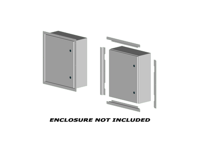Flush Mount Frames are designed for use with the Enviroline Wall-Mount Enclosures, quickly converting the wall mount enclosure to a flush mount enclosure. Two part numbers are required to complete the assembly, one part number for the height of the enclosure and one part number for the width of the enclosure. All kits are provided with hardware to assemble the frame to the enclosure and maintain the environmental rating of the enclosure. Frame is made of heavy gage steel.