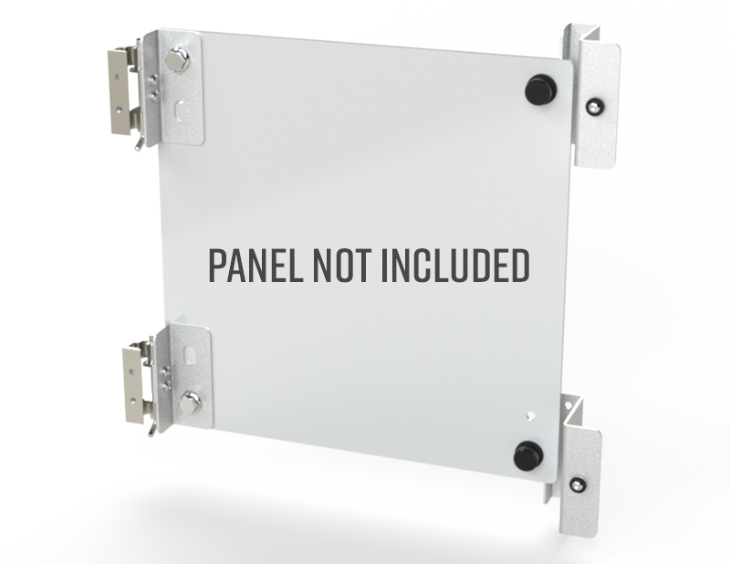 Designed to allow a standard sub-panel to be installed in the front of an enclosure and to swing out of the enclosure. Kit consists of heavy gauge brackets, hinges, and mounting hardware. Installed by detaching door hinge from enclosure and installing swing out panel kit to the existing holes and hinge supplied with the enclosure.