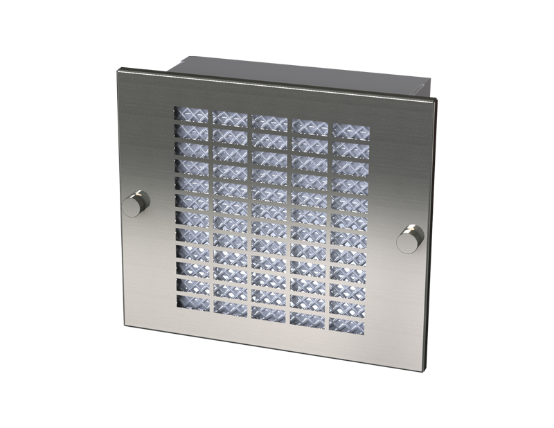 Designed for use in enclosures that require cooling but have limited space. Consists of a washable aluminum filter, steel air plenum, removable stainless steel grille, single phase fan, and approximately 14 inch of lead wire. Grille has captivated thumbnuts for easy access to the filter from the outside. Fan is available in 115 or 230 volt AC, 60/50 Hertz (HZ) single phase or 24 VDC. Air plenum is ANSI-61 gray urethane polyester powder coated.