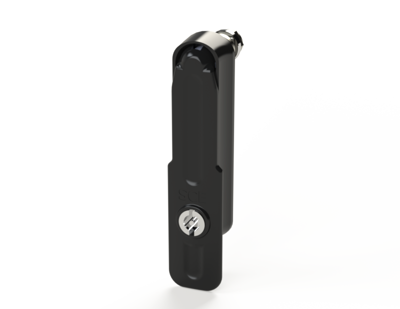 Designed for use on custom and stock SCE enclosures. Can be used as direct replacements on SCE Work Stations and Desk Consoles when a different locking mechanism is required. Convert a SCE standard L-Handle to low pro-profile swing handle by adding a 0.88 round hole below existing mounting hole. See Installation Instructions for details.