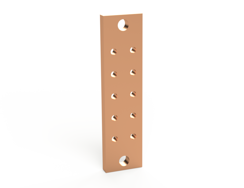 Designed to provide a grounding area for controls and equipment. Has ten 10-32 tapped conductor holes and two mounting holes. Made from copper.