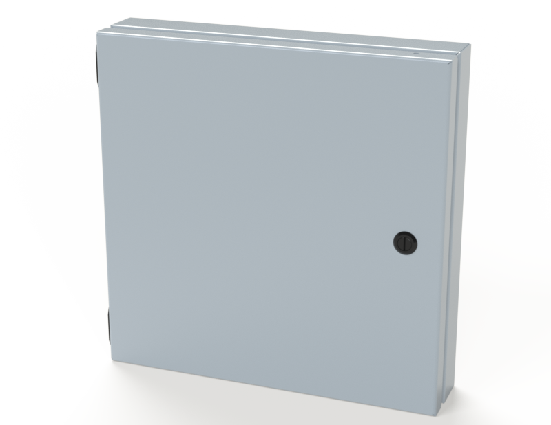 Designed to house electrical controls, instruments and components used in an indoor or outdoor environment to provide a degree of protection for the equipment inside the enclosure against ingress of solid foreign objects (falling dirt); and provide a degree of protection with respect to the harmful effects on the equipment due to the ingress of water (rain, sleet, snow). ELJ hinges. Black mini quarter turn latches. Gasket and hardware included. For outdoor application a drip shield and drain vent is recommended.