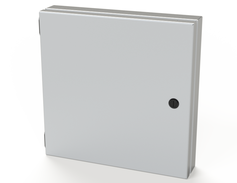 Designed to house electrical controls, instruments and components used in an indoor or outdoor environment to provide a degree of protection for the equipment inside the enclosure against ingress of solid foreign objects (falling dirt); and provide a degree of protection with respect to the harmful effects on the equipment due to the ingress of water (rain, sleet, snow). ELJ hinges. Black mini quarter turn latches. Gasket and hardware included. For outdoor application a drip shield and drain vent is recommended.